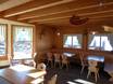 Die gemütliche Skihütte bietet regionale Spezialitäten und eine Sonnenterrasse. Bei schlechtem Wetter wartet die liebevoll eingerichtete Stube.