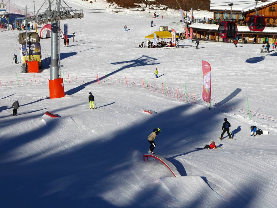 Der kleine Snowpark befindet sich an der Vierersesselbahn Col de la Grava und bietet einige Obstacles.