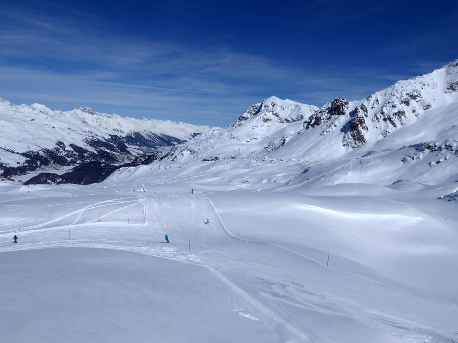 Das Skigebiet der Wintersportregion Engadin St. Moritz ist groß und die Pisten liegen rund um Corvatsch und Furtschellas. Die Corvatsch Bergstation führt bis auf 3303 Meter über den Meeresspiegel. Sie ist die höchste Bergstation in Graubünden und bietet ein einzigartiges Panorama. Das Skigebiet erstreckt sich über die Talorte Sils im Engadin/Segl, Surlej (Silvaplana) und St. Moritz. Nach St. Moritz-Bad führt eine Talabfahrt, aber es startet kein Lift. Skibusse fahren von hier zur Corvatsch Talstation Surlej.