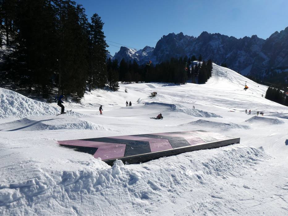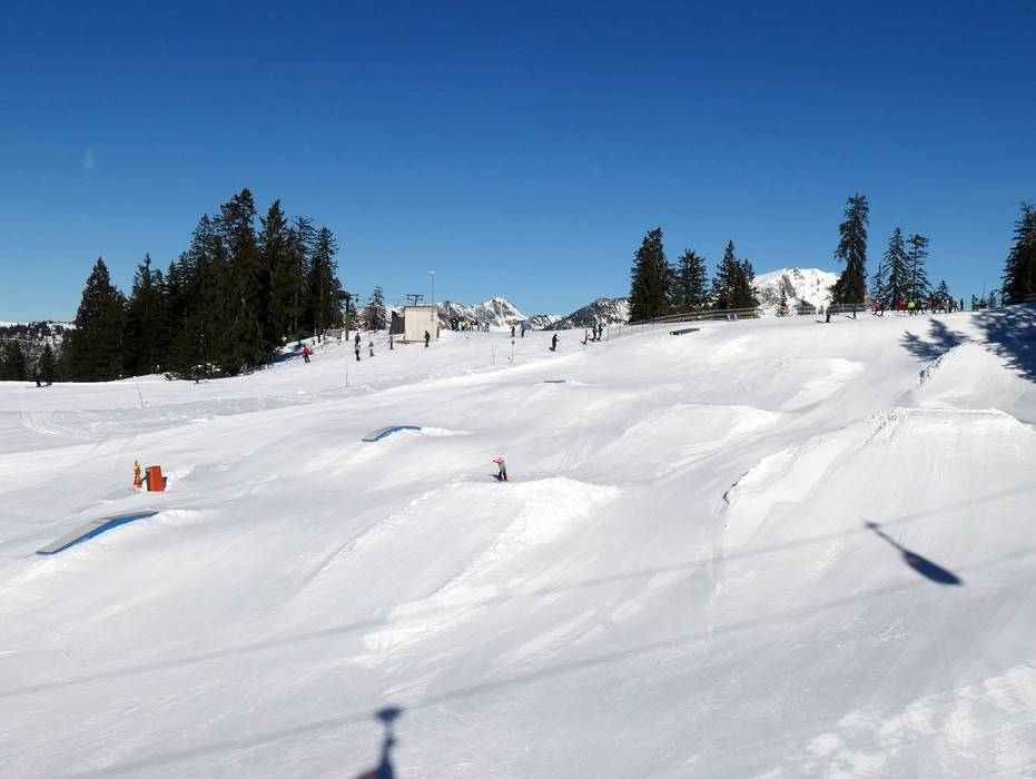 Der Snowpark ist ein Spaß für die ganze Familie. In sonniger Lage sind die Hindernisse und Sprünge auf Familien ausgerichtet.