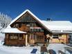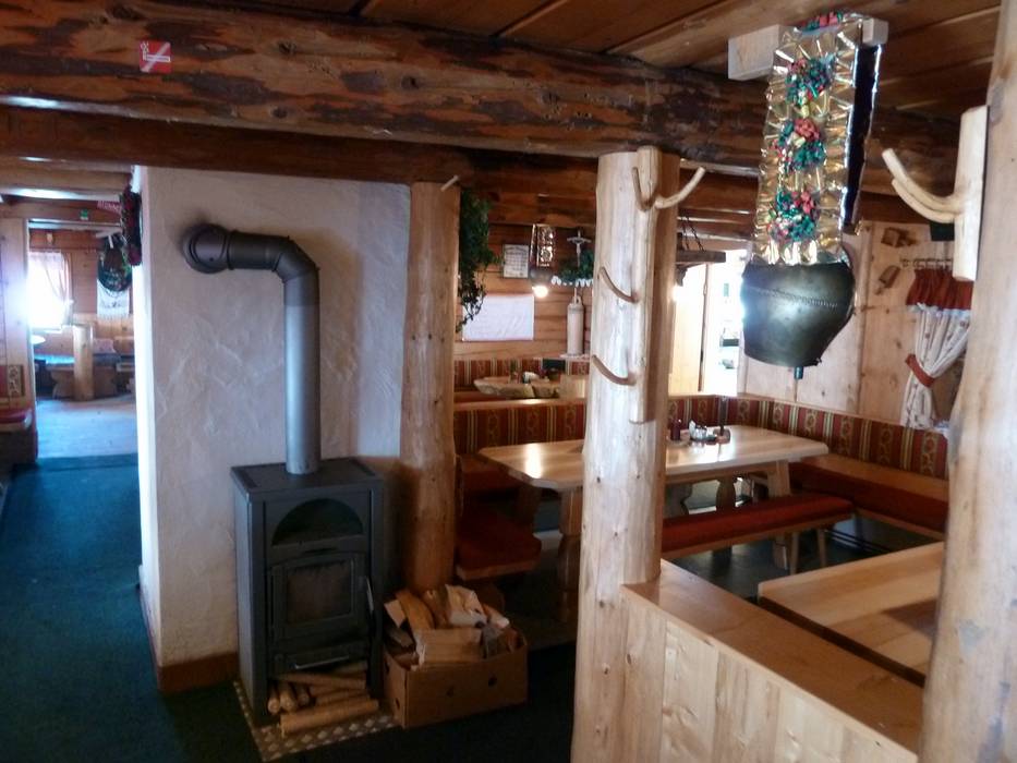 Eine urige, sehr gemütliche Skihütte mit Kamin und großer Sonnenterrasse.