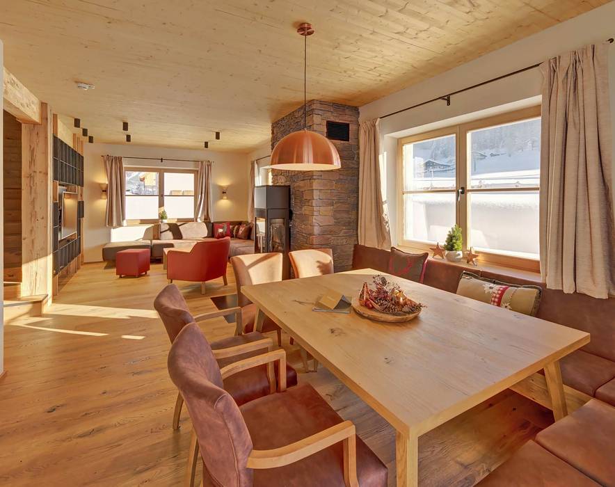 Die Chalets mit bis zu 157m² sind traumhaft schön. Mehrere Schlafzimmer, Kinderzimmer, große Bäder, ein Kamin und eine eigene Sauna begeistern.