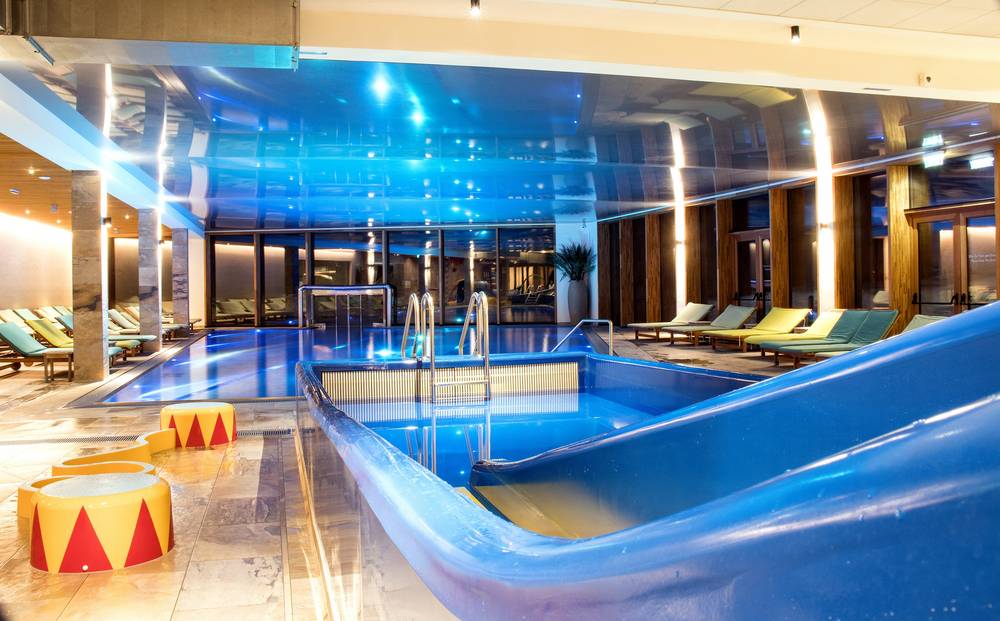 Sensationelle 2.000 m² ist der Indoor-Spielbereich groß. Kino und Theater, eine Softplayanlage über zwei Stockwerke, eine Familien-Bowlingbahn, eine Turnhalle, eine Kartbahn und viele weitere Attraktionen sprengen die Vorstellungskraft so mancher Kinderträume. Ab dem siebten Lebenstag (!) werden Babys und Kinder professionell betreut. 25 ausgebildete Betreuer – großteils Kindergartenpädagogen – kümmern sich sieben Tage in der Woche von 8 bis 21 Uhr um die jungen Gäste. Das absolute Highlight befindet sich in der Badelandschaft: die 100 Meter lange Wasserrutsche mit tollen Spezialeffekten.
