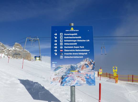 Orientierung (Pistenplan, Informationstafeln, Ausschilderung) und Sicherheit im Skigebiet Dachsteingletscher