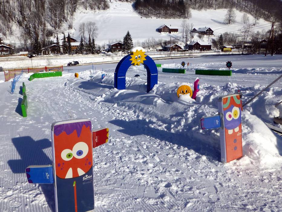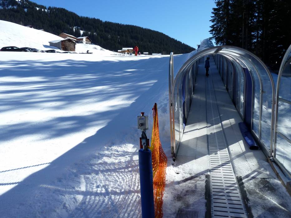 In der Nähe der Talstation der Sunneggbahn befindet sich ein großes Übungsgelände mit Förderbändern. Eines davon ist überdacht. Hier gibt es viel Platz und lustige Figuren für die Kleinen.