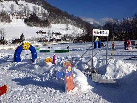 Familien mit Kindern sind im Skigebiet Damüls Mellau sehr gut aufgehoben. In Damüls und Mellau gibt es eigene Kinderländer. Zusätzlich gibt es in Damüls auch ein großes Übungsgelände am Riedlboden. In Mellau lockt der Easy Cheesy Übungslift die Kleinen auf eine flache Piste. Sämtliche Pisten im Skigebiet sind für die komplette Familie sehr gut geeignet.