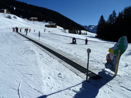 Etwas oberhalb von Damüls befindet sich der Bunny Park der Skischule Damüls. Der ideale Ort für die Kleinen, den Wintersport zu erlernen. Das Förderband erschließt den Übungshang perfekt.