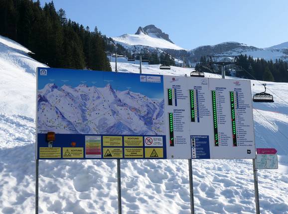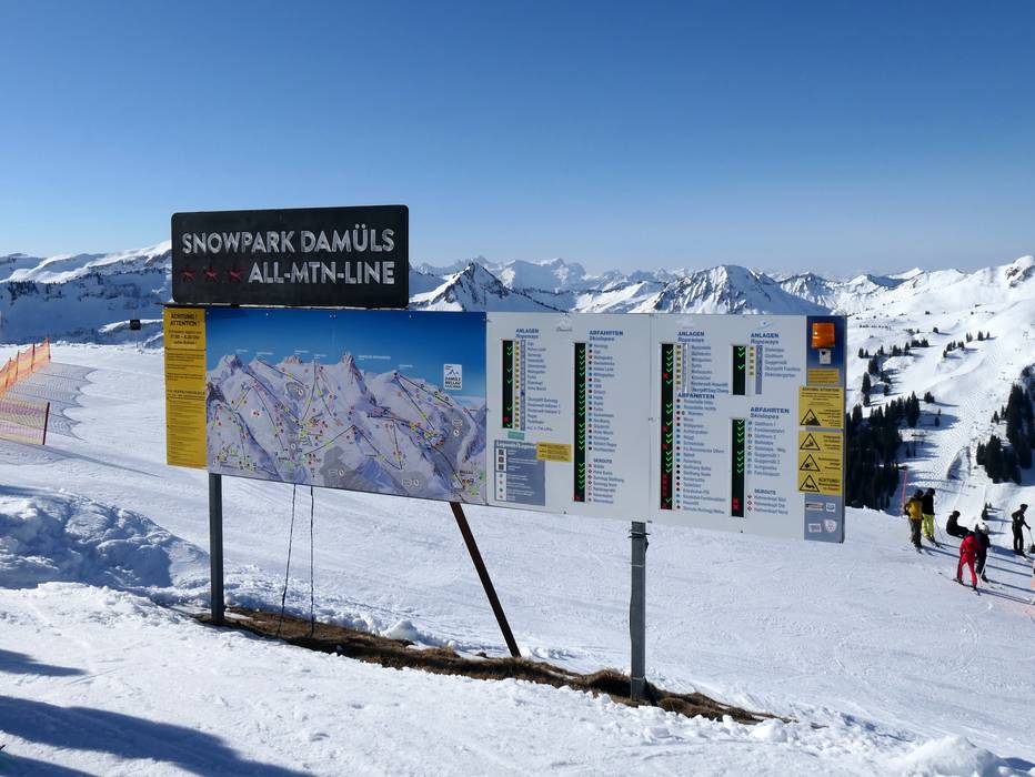 Die Ausschilderung und Pistenmarkierung im Skigebiet Damüls Mellau sind sehr gut. An den Talstationen und an wichtigen Punkten im Skigebiet findet man detaillierte Informationstafeln mit aktuellen Informationen zum Betriebsstatus.