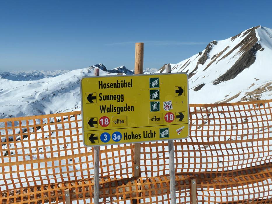 Informationstafeln und Ausschilderung auf den Pisten