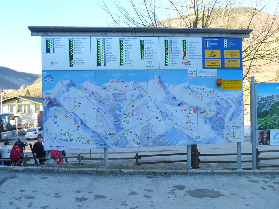 Die Ausschilderung im Skigebiet Damüls-Mellau ist gut. Man findet sich zurecht. An den Talstationen findet man detaillierte Informationstafeln mit aktuellen Informationen zum Betriebsstatus.