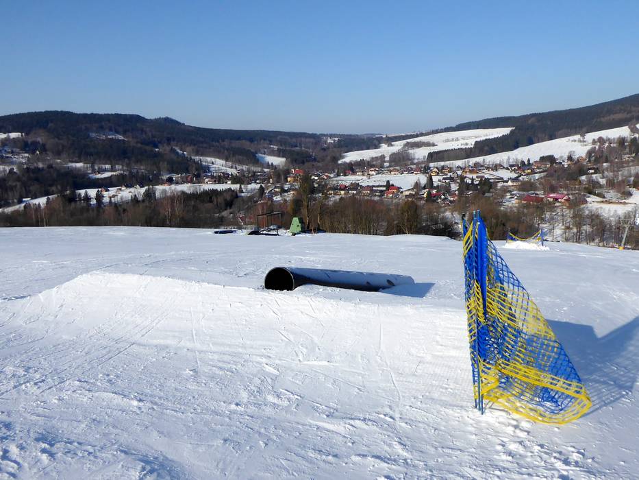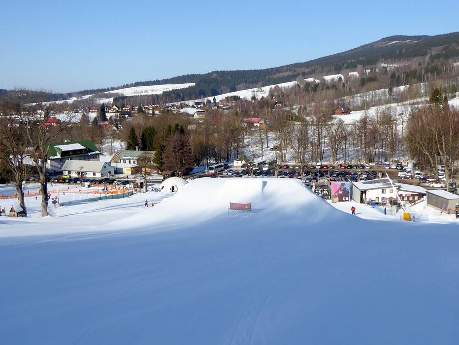 Das Skigebiet Deštné bietet einen Snowpark im unteren Bereich der Vierersesselbahn Marta am Schlepplift Kotva-Yourpark.