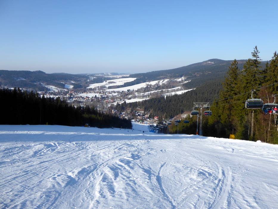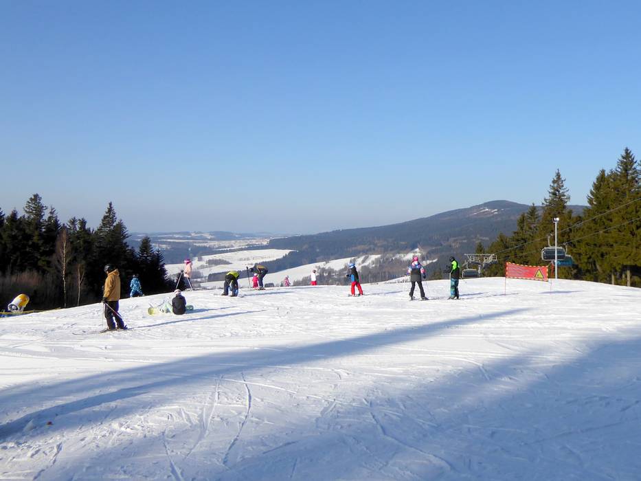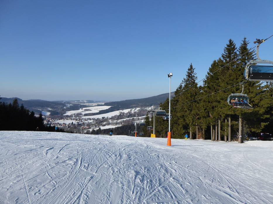 B. Marta - 4er Hochgeschwindigkeits-Sesselbahn… C. Kotva-Yourpark - Schlepplift mit… E. Kiddo Park - Förderband F. Výukové hřiště - Förderband Sehr gute Pistenpräparierung im Skigebiet… Blick auf den Ort Deštné v Orlických horách Unterkünfte an der Talstation Tipp für die Kleinen - Kids Park Tipp für die Kleinen - Skischule Bild Deštné