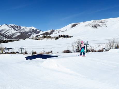 Familien mit Kindern sind im Skigebiet Dollar Mountain in Sun Valley bestens aufgehoben. Das komplette Skigebiet kann auf leichten Pisten befahren werden. Leichte Snowparks und der Snow Cross Course sind ideal für die ganze Familie. Vor der Carol's Dollar Mountain Lodge gibt es ein kleines Übungsareal mit Förderband. Die ansässige Skischule bietet Kinderbetreuung mit an.