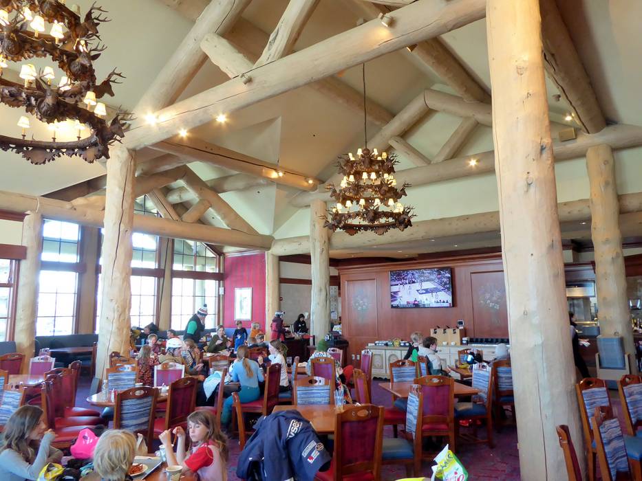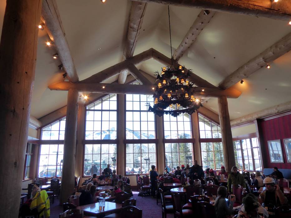 Das große Restaurant mit Selbstbedienung überzeugt mit frischen Zutaten und kreativen Gerichten. Von den großen Fensterfronten und der großen Terrasse hat man einen herrlichen Blick über die Snowparks vom Dollar Mountain in Sun Valley.
