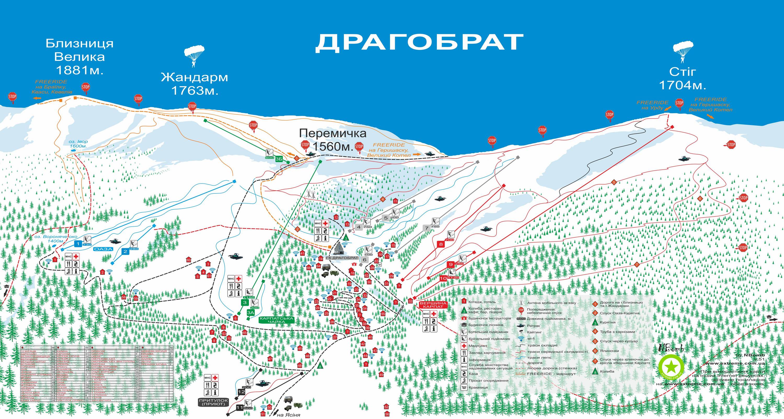 Dragobrat (Драгобрат) (0,5 km), Jassinja (Ясіня) (13 km) Orte am Skigebiet