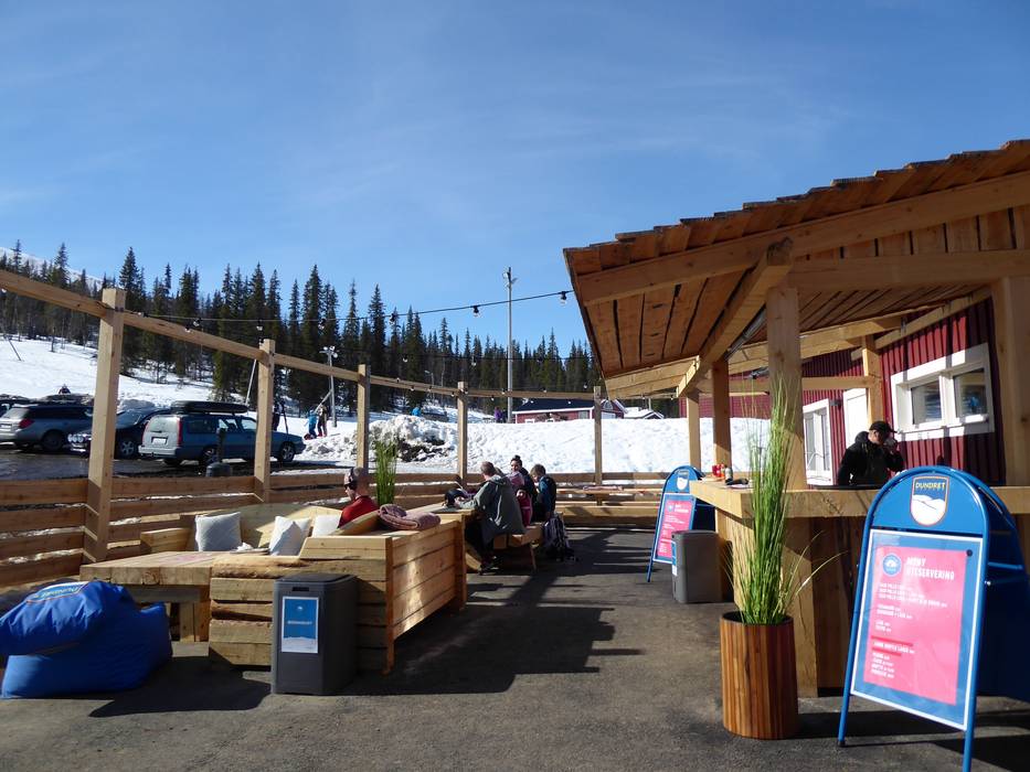 Direkt an der Talstation kann man im El Reno Gordo einkehren und Tacos genießen. Knapp unterhalb des Gipfels wartet die Fjällstugan Dundret (momentan geschlossen). Zudem warten einige Feuerstellen im Skigebiet für eine Pause vom Wintersport.