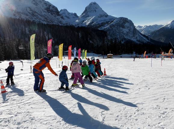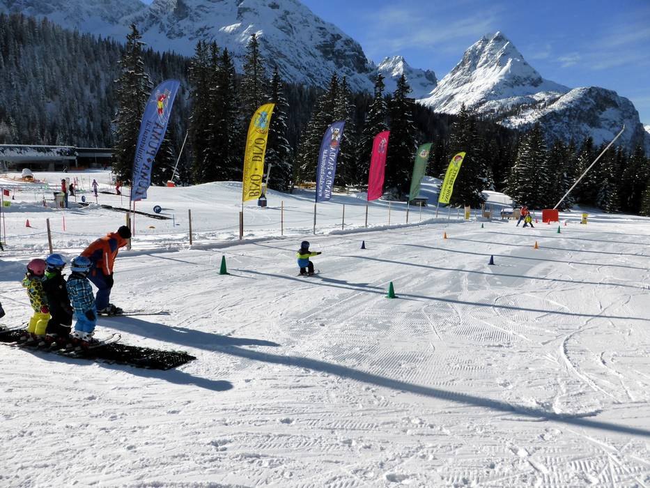 Das Kinderland liegt an der Bergstation der Gondelbahn und hat mehrere Zauberteppiche und einen Minilift.