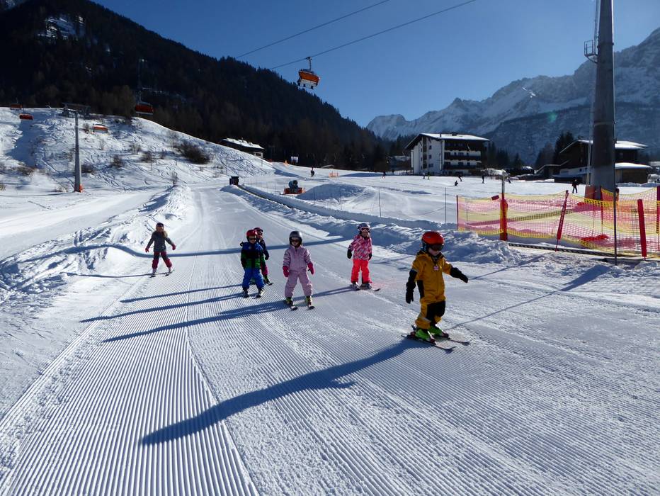Das übersichtliche Skigebiet der Wettersteinbahnen Ehrwald ist sehr gut für Familien geeignet. Das Areal am Sonnenhang ist ideal. Neben den Kinderländern der Skischulen gibt es ein Übungsareal mit Förderband und Schlepplift. Die 6er-Sesselbahn Sonnenhang Sunracer verfügt über eine Kindersicherung und die Abfahrten sind breit und leicht. Zudem locken ein cooler Holzbrückenparcours, die lustige Pony-Lernpiste, eine Kids-Halfpipe und der Kidspark. Fortgeschrittene Kinder können an der Wettersteinbahn und am Gamskarlift ihre Skikenntnisse vertiefen.