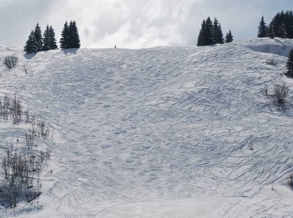 Trotz der Fokussierung auf Familien hat der Espace Diamant auch seine rauen Seiten und nicht alle Pisten werden platt gewalzt – auch Buckelpisten findet man! Dazu zählen unter anderem die Ban Rouge in Praz sur Arly, die Sapinière in Les Saisies oder die Gueux Noire in Notre Dame de Bellecombe. Schwarze Abfahrten finden sich im gesamten Gebiet, sogar an der Rückseite des ansonsten so sanften Mont Bisanne. Freerider zieht es zu den Hängen am Kamm zwischen La Légette und Ban Rouge. Die sind ordentlich steil, liegen oberhalb der Baumgrenze und sind dank der Klientel des Skigebietes längst nicht so schnell verspurt, wie das in manch angesagtem Freeride-Ziel der Fall wäre. Schon wegen der schieren Größe des Gebietes finden sich auch unterhalb der höchsten Zonen vielfältige Betätigungsfelder abseits der markierten Pisten. Ein Highlight ist die nicht präparierte Abfahrt Les Prés auf der Südseite des Mont Vores.