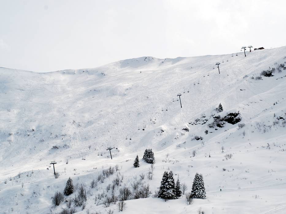 Am Nordhang des Mont Rond führt diese nicht immer gewalzte schwarze Piste durch den Wald talwärts. Dank kuppelbarem Sechser ist man schnell wieder oben. - Sapinière · Länge 0,7 km · Höhenunterschied 200 m