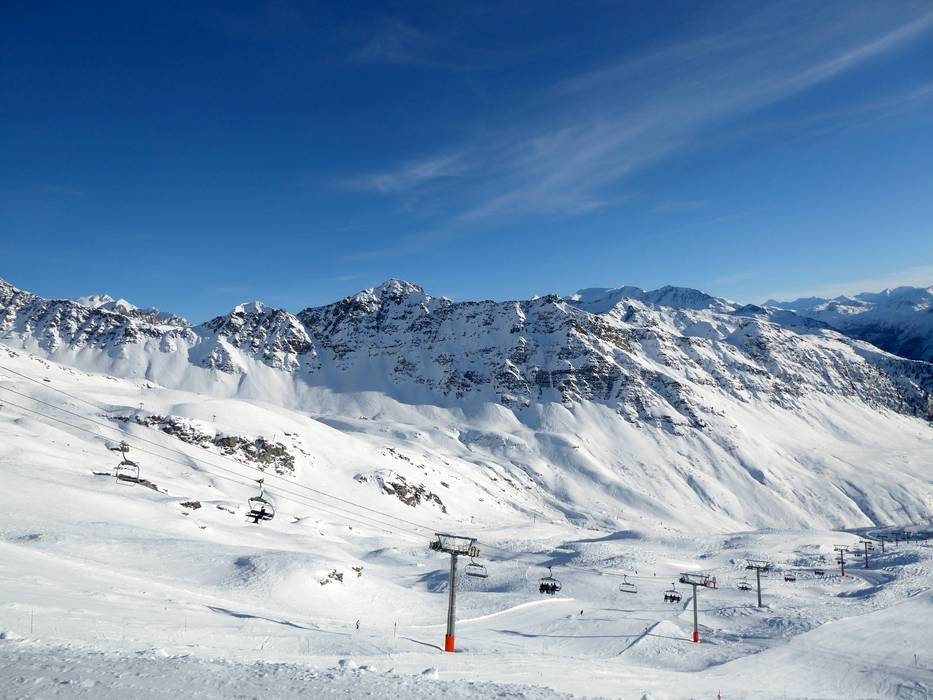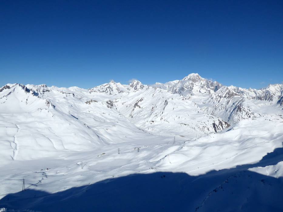 Espace San Bernardo – La Thuile Blick zum Kleinen St. Bernhard Pass 2188 m Blick vom Fort La Rosière zum Pointe des… Skigebiet Espace San Bernardo – La Rosière