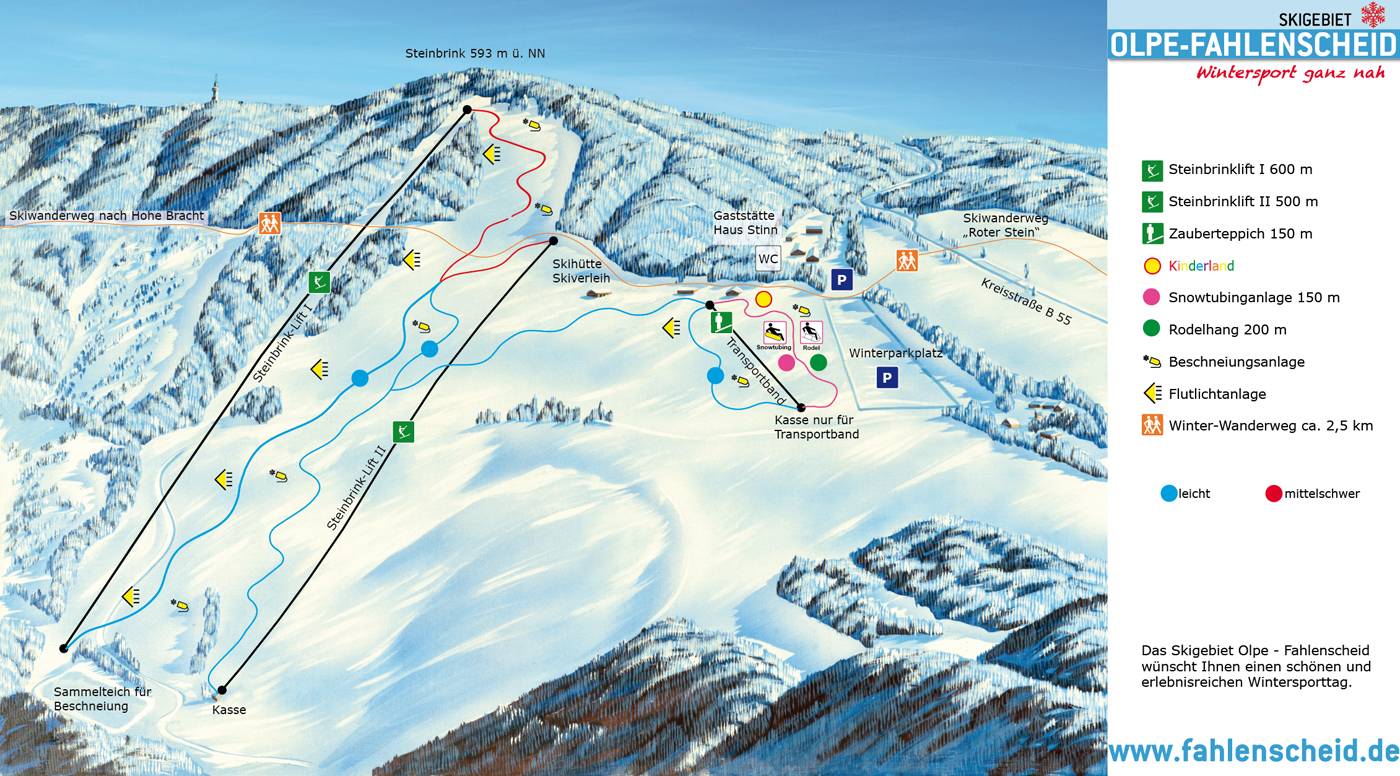 Orientierung (Pistenplan, Informationstafeln, Ausschilderung) und Sicherheit im Skigebiet Fahlenscheid – Olpe