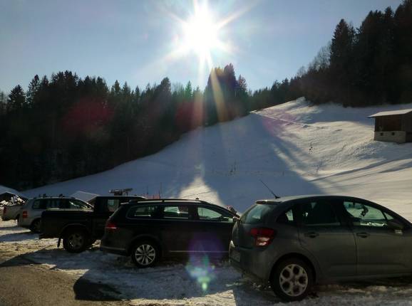Parkplätze: meist ausreichend vorhanden, asphaltierter Platz, Kiesplatz, kostenfrei