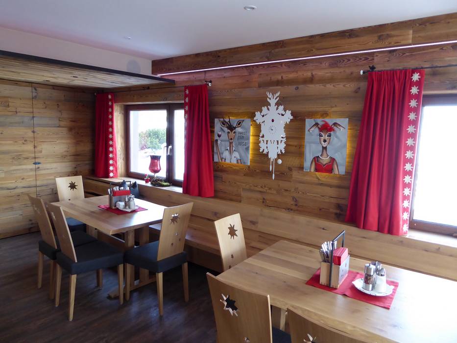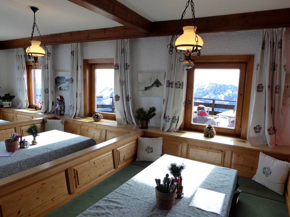 Die urige und gemütliche Hütte bietet eine Sonnenterrasse mit schönem Panoramablick. Bei kaltem Wetter wärmt der Kachelofen in der Stube. Es werden regionale Schmankerl angeboten.