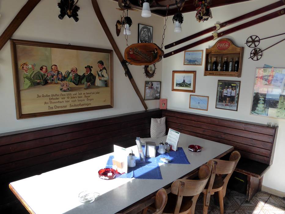Das Feuerkogelhaus bietet eine urige, geschichtsträchtige Gaststube. Es wird regionale Hausmannskost angeboten. Bei schönem Wetter lockt die große Sonnenterrasse.