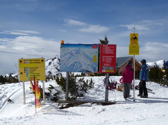 Im Skigebiet Feuerkogel gibt es einen Pistenplan mit Betriebsinformationen vor dem Talstationsgebäude und an der Bergstation. Sämtliche Pisten sind groß, gut sichtbar und eindeutig ausgeschildert. Man findet sich gut im Skigebiet zurecht.