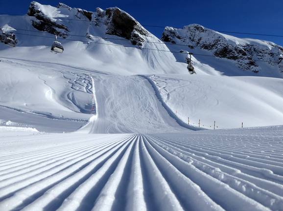 Die Pisten im Skigebiet First werden mit einer modernen Fahrzeugflotte täglich mit viel Liebe zum Detail präpariert. Dank des Schneehöhenmess-Systems Snow Sat wird der Schnee gleichmäßig verteilt und die Pisten sind tadellos präpariert.