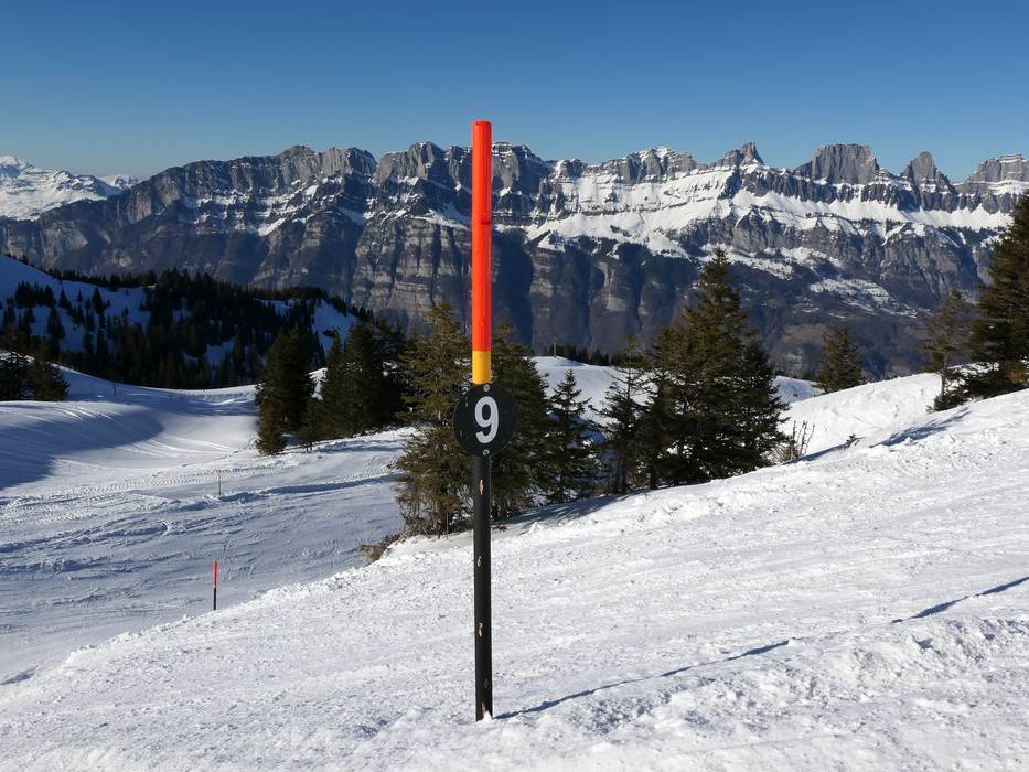 Orientierung (Pistenplan, Informationstafeln, Ausschilderung) und Sicherheit im Skigebiet Flumserberg