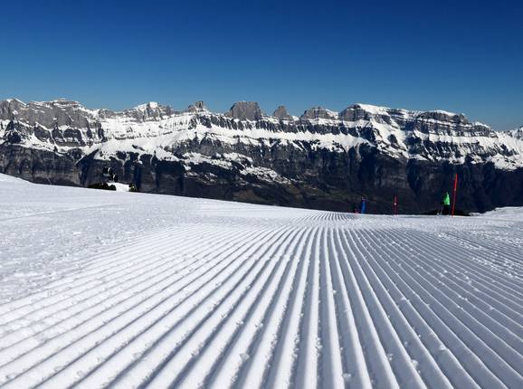 Eine moderne Pistengeräteflotte sorgt im Skigebiet Flumserberg für eine erstklassige Pistenpräparierung. Die Pisten werden in voller Breite und mit viel Liebe zum Detail präpariert. Auch am Nachmittag sind die Pisten meist noch in einem optimalen Zustand.