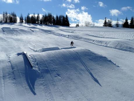 Der 550 m lange Snowpark befindet sich oberhalb von Fondo Piccolo. Auf den leichten bis mittleren Hindernissen fühlen sich Anfänger und Könner wohl.