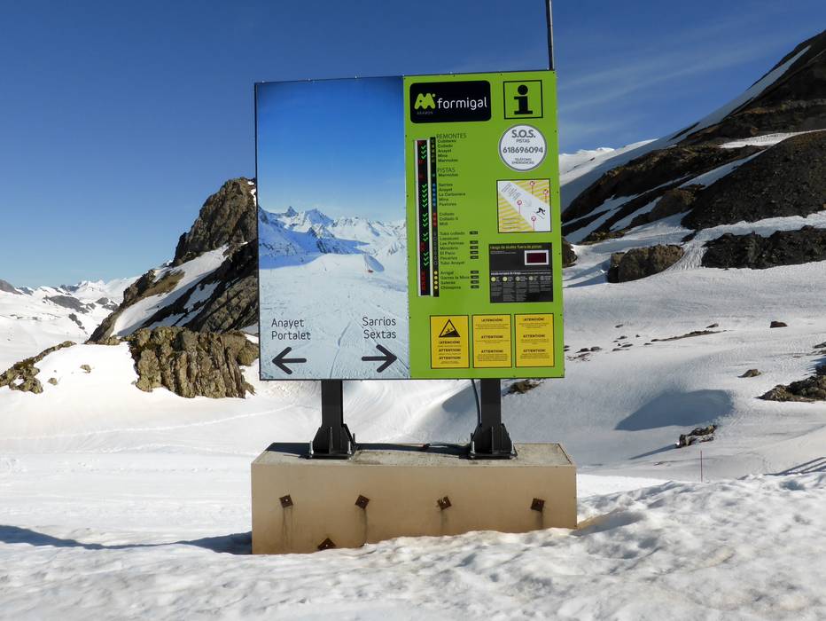 Orientierung (Pistenplan, Informationstafeln, Ausschilderung) und Sicherheit im Skigebiet Formigal