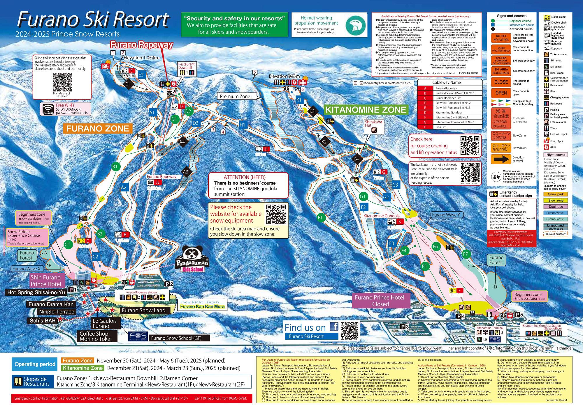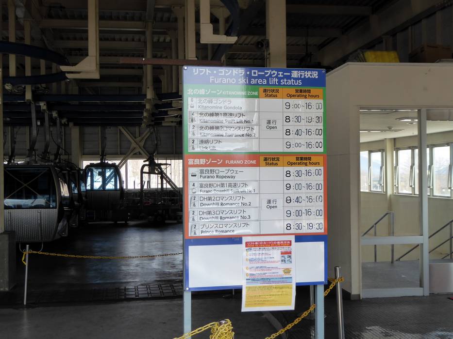 Die Ausschilderungen im Skigebiet Furano sind sehr gut. Alle Pisten und Lifte sind perfekt in japanischer und englischer Sprache ausgeschildert. Überall findet man aktuelle Informationen und Öffnungszeiten. An den einzelnen Skiliften findet man technische Daten. Eine Orientierung im Skigebiet von Furano ist somit sehr leicht möglich.
