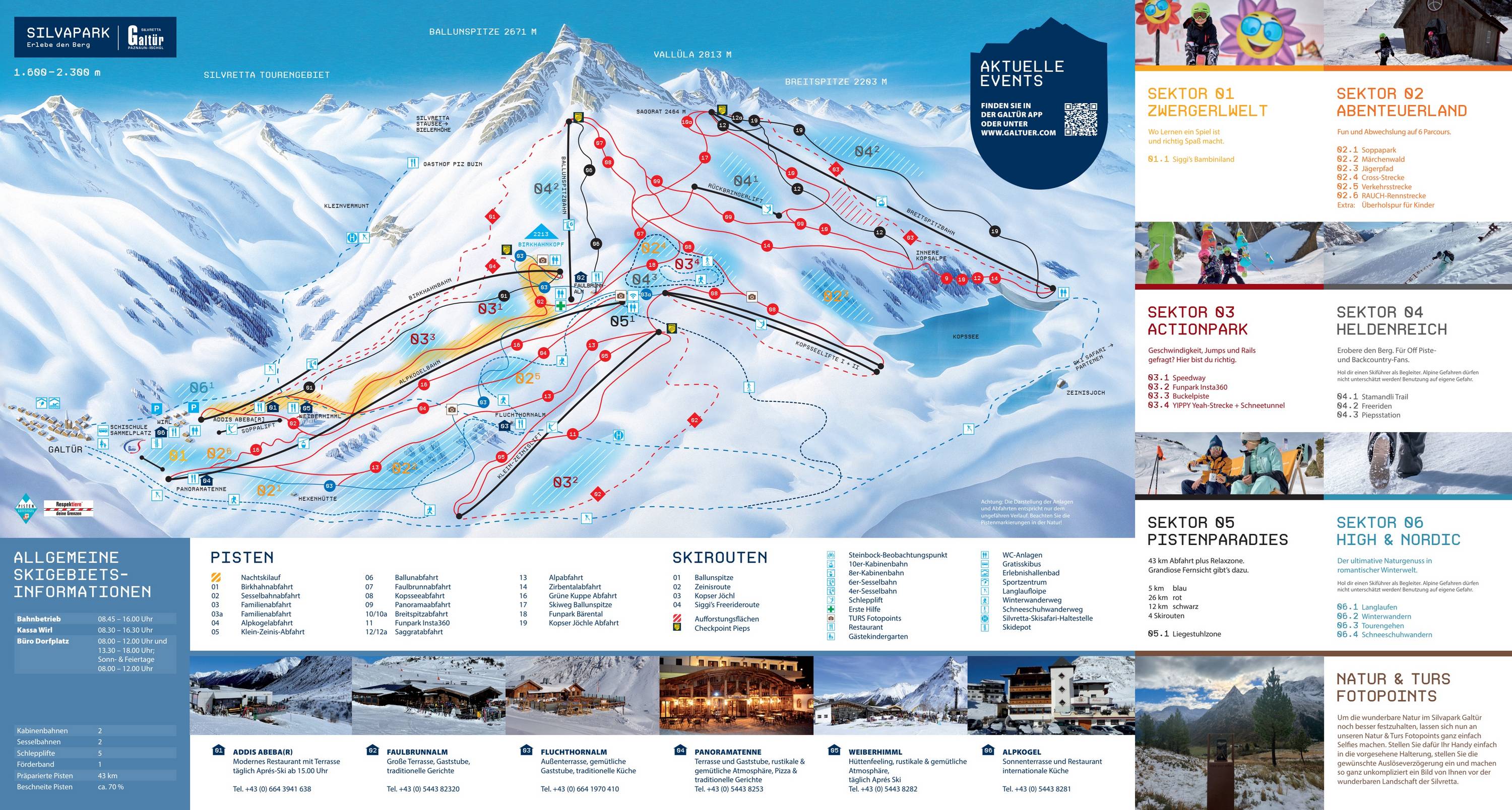 Orientierung (Pistenplan, Informationstafeln, Ausschilderung) und Sicherheit im Skigebiet Galtür – Silvapark