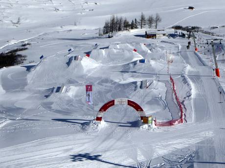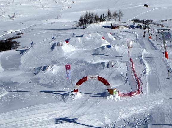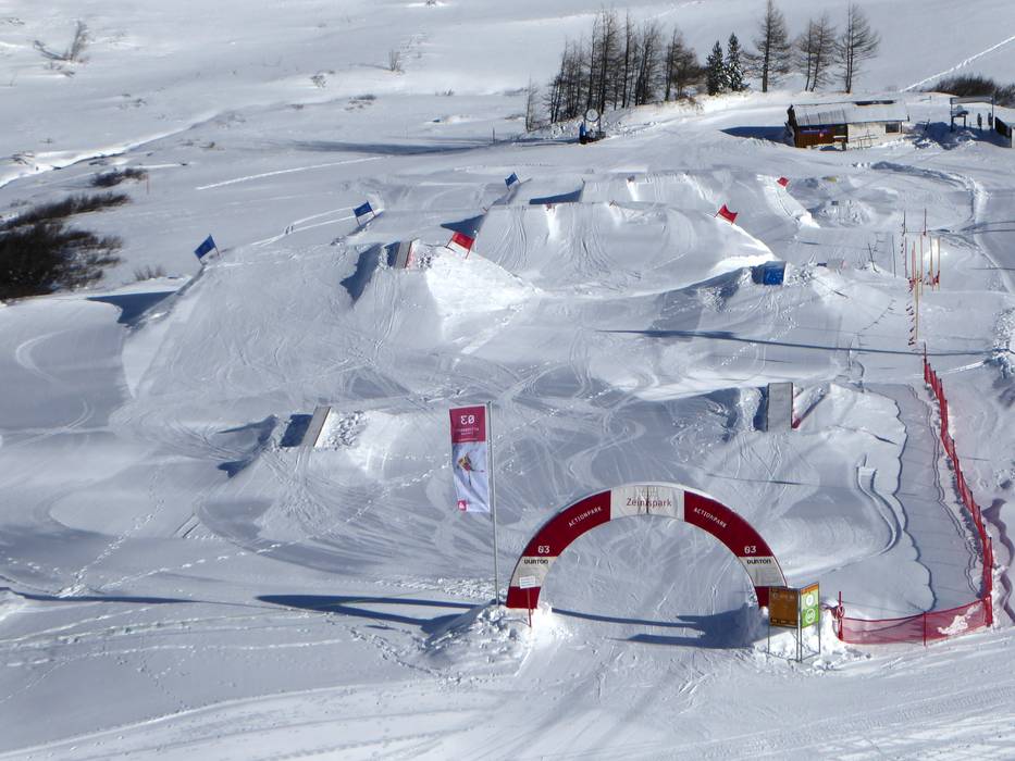 Der mittelgroße Snowpark liegt am Klein-Zeinislift und wird täglich geshaped. Mini Wall, Rails, Boxes und Jumps locken die Freestyler.