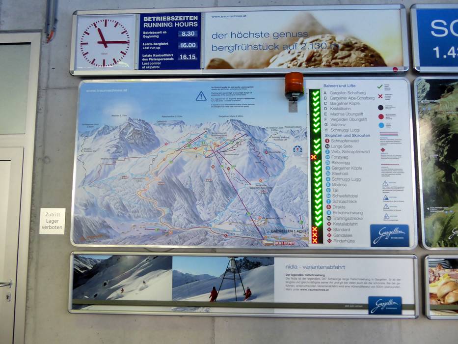 Orientierung (Pistenplan, Informationstafeln, Ausschilderung) und Sicherheit im Skigebiet Gargellen
