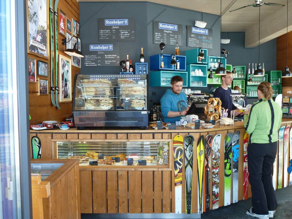 Die Skibar Kandahar 2 punktet unter anderem mit einer tollen Optik. Es gibt dazu eine variationsreiche Imbisskarte, Kaffee und Kuchenspezialitäten sowie viele Plätze an der Sonne.