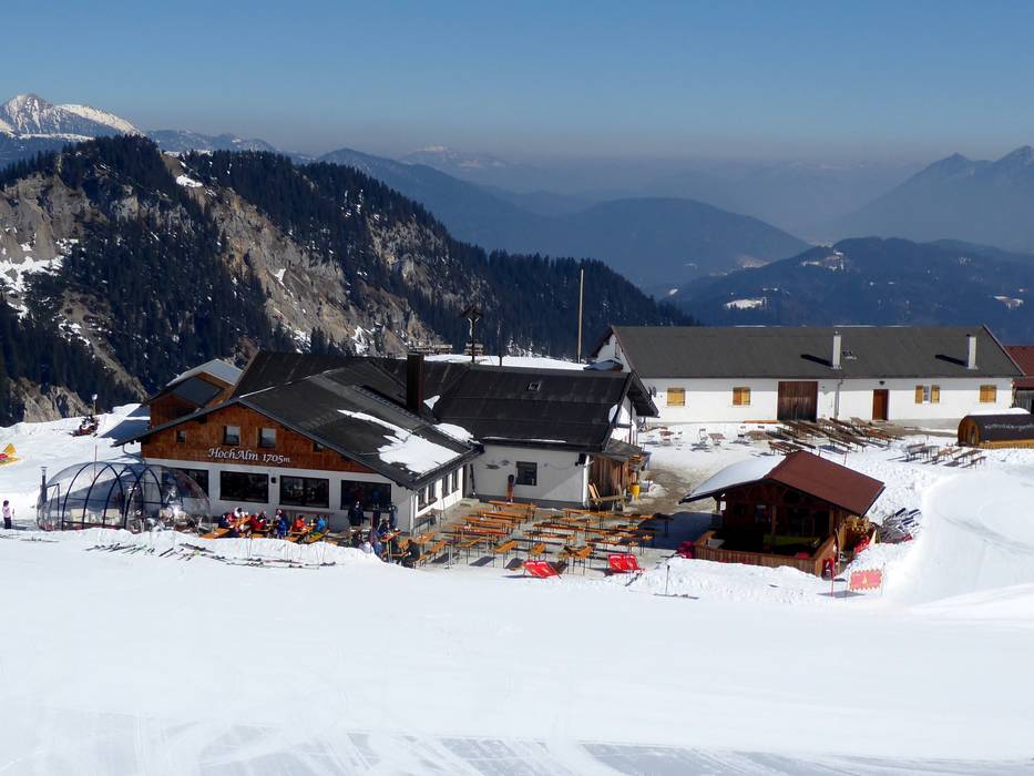 Die Hochalm ist eine sehr gemütliche Hütte mit Kachelofen und großer Sonnenterrasse. Auf der Sonnenterrasse befindet sich ein exklusiver Pavillion, der bei jedem Wetter genutzt werden kann. Kulinarisch bietet man traditionelle bayrische Küche. Auf der Hochalm kann man auch übernachten.