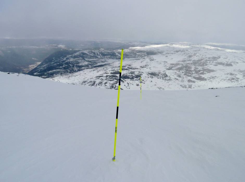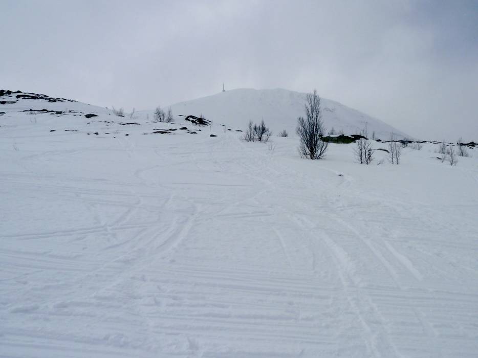 Vom Gaustatoppen führt eine schwere Skiroute zu Tale.