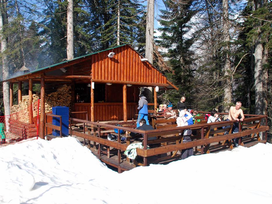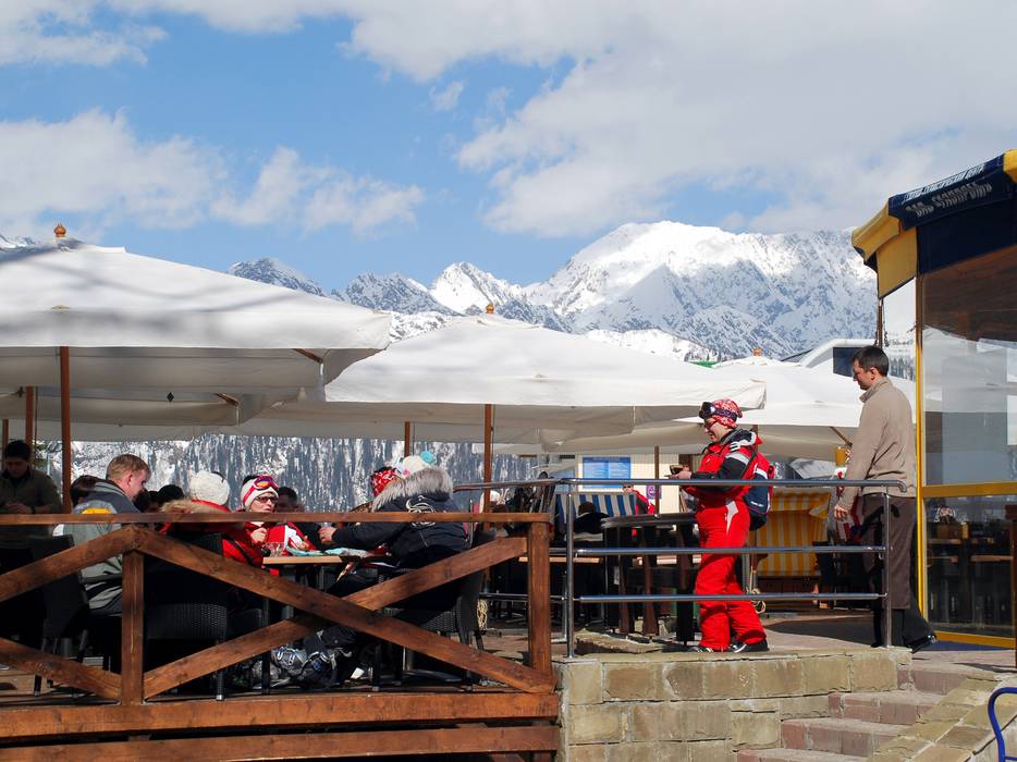 Gazprom Mountain Resort ist das Lieblingsskigebiet von Vladimir Putin. Vielleicht muss man deshalb durch Sicherheitskontrollen, wie man sie sonst nur von Flughäfen kennt, bevor man im Tal in die Zubringergondel steigt. Die Masten der Bahn sind zur Prävention von Terrorattacken eingezäunt und mit