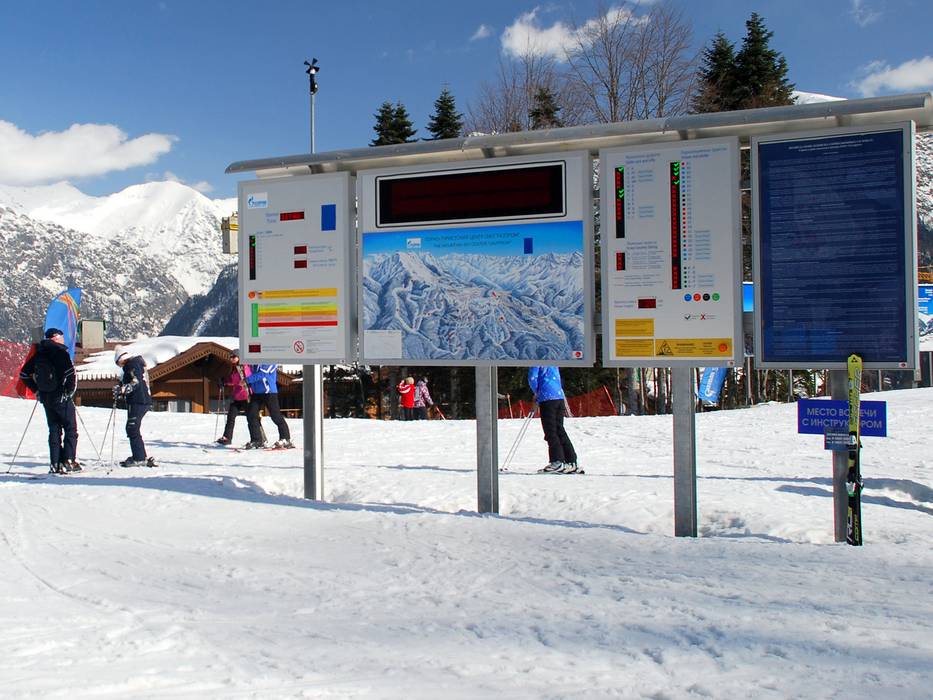 | Hinweis: Die Öffnungszeiten sind generelle Angaben vom Skigebiet Gazprom Mountain Resort und können je nach äußeren Bedingungen, Wochentagen, Schulferien und Feiertagen variieren. | |