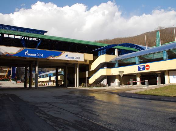 Das Gazprom Mountain Resort ist sehr gut erreichbar. Ab der Saison 2013/14 gelangt man mit dem Schnellzug vom Flughafen Adler in nur 25 Minuten bis an die Talstation der Funitel, die direkt vom Bahnsteig bis auf 1625 m zur Bergstation des Skigebietes führt. Mit dem PKW sind vom Flughafen Adler bei Sotschi etwa 50min zu veranschlagen, es verkehren auch regelmäßig Busse. An der Talstation verschwinden die Autos in einem großen Parkhaus (1200 Stellplätze).