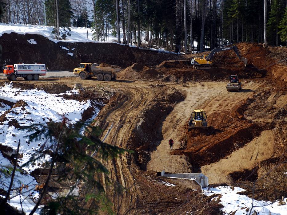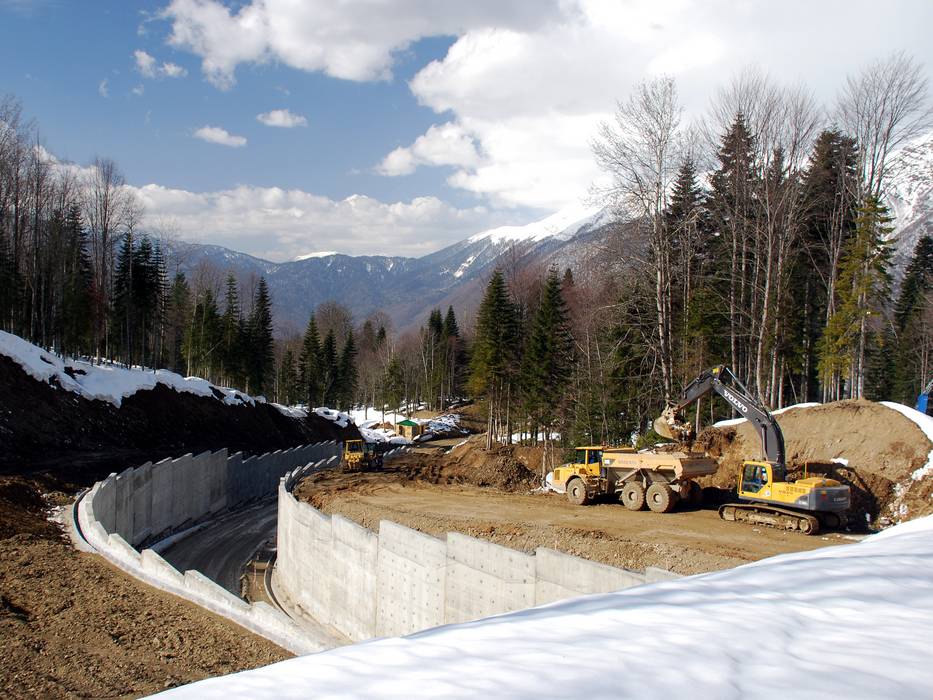 Die Olympischen Spiele 2014 von Sotschi stehen nicht zuletzt wegen der kompletten Neuerschließung von Skigebieten in bisher unverbauten Naturräumen in der Kritik. Der Psekhako Ridge, auf dem sich das Gazprom Mountain Resort befindet, wurde vor allem zur Schaffung der Zufahrtsstraßen massiv zu Leibe gerückt, was man vor allem dann sieht, wenn nicht so viel Schnee liegt. Immerhin wurden für die Eingriffe in Folge des Skigebietsausbaus zahlreiche Ausgleichsmaßnahmen durchgeführt, u.a. ein Projekt zur Wiederansiedlung der Schneeleoparden. Die vorbildliche Anbindung der Skigebiete rund um Krasnaya Polyana an das öffentliche Verkehrsnetz fällt ebenfalls positiv ins Gewicht. Im Zuge der Spiele wurde die Region auch an die Gasversorgung angeschlossen, es muss also nicht mehr mit Kohle und Holz geheizt werden, was die Luftqualität deutlich verbessert hat.