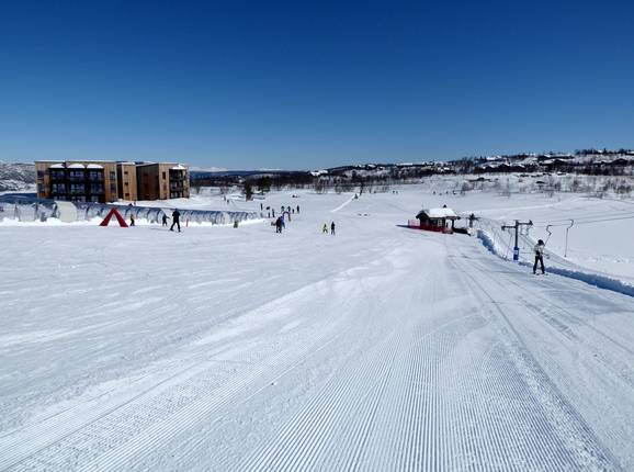 Das Skigebiet Geilo ist ein Paradies für Anfänger. Das komplette Wintersportgebiet kann auf leichten Pisten befahren werden. Geilo verfügt über speziell gekennzeichnete Anfängerbereiche mit sanften Hängen und sehr gut präparierten Pisten. Es stehen kostenfreie Förderbänder mit Übungshängen überall verteilt zur Verfügung. Somit sind Anfänger hier überall willkommen.