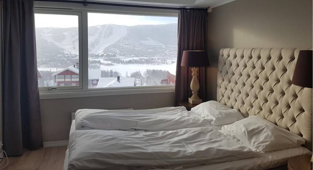 Etwa die Hälfte der Apartments bietet Aussicht auf das Skizentrum Halstensgård und die andere Hälfte auf den Ustedalsfjord und Vestlia.