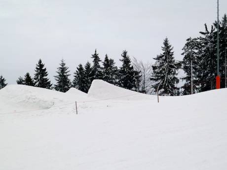 Für Snowboarder und Freestyler gibt es einen Snowpark mit Jumps, Kicker, Boxen, Rails etc.