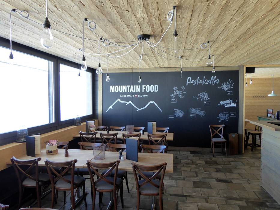 Unter dem Motto "Mountain Food" betreibt die SkiArena Andermatt-Sedrun zwei Restaurants an der Mittelstation Gurschen. Eine gemütliche Berghütte und ein Restaurant im Tal runden das Angebot ab.